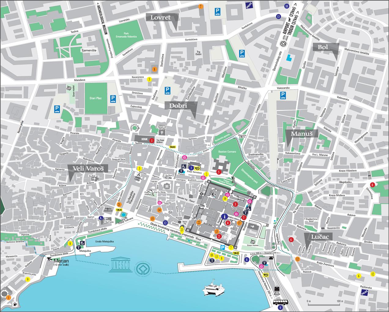 Gamle byen split kroatia kart
